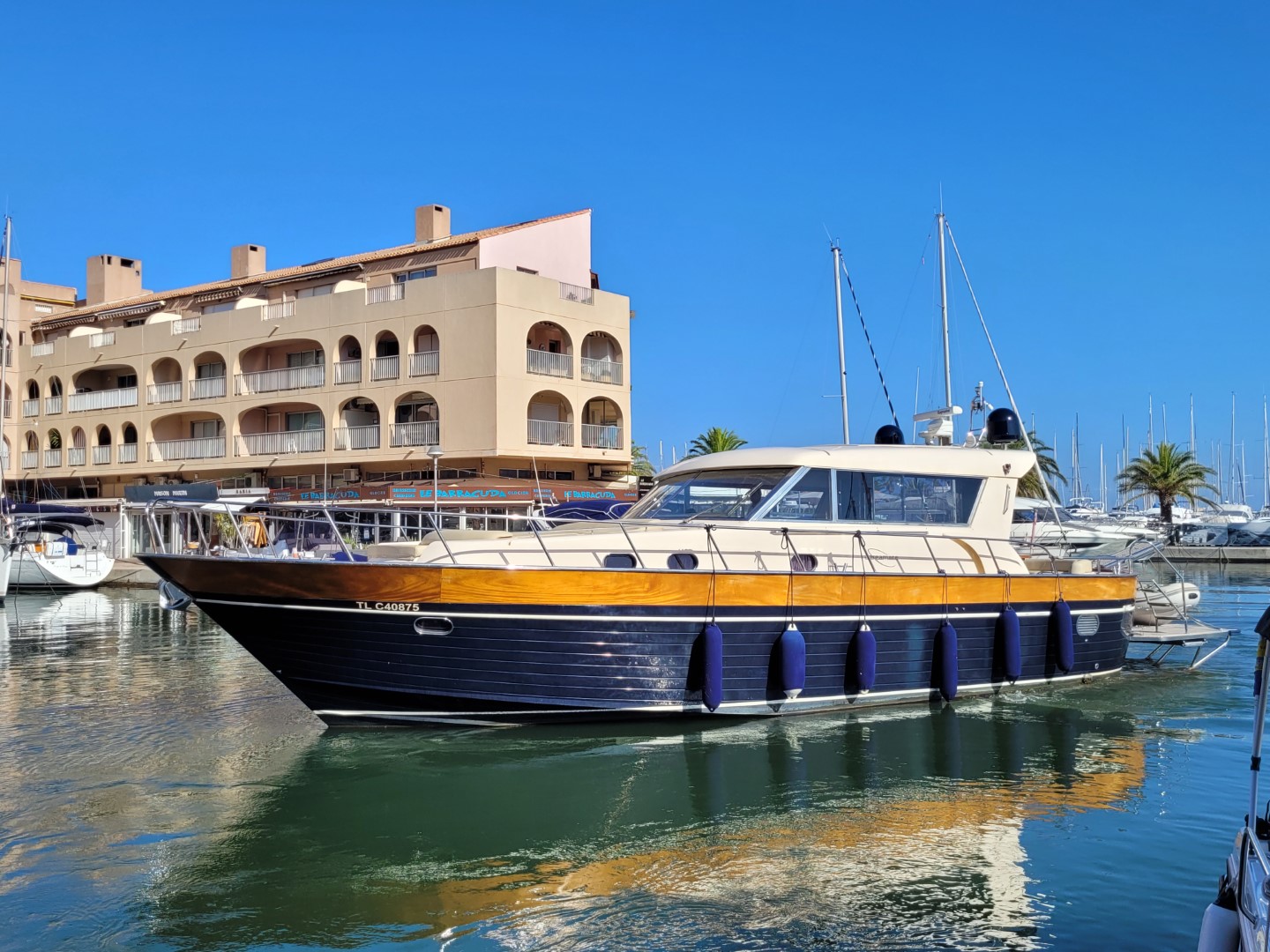 APREAMARE 359'000 € ttcAnnée 2004Longueur14.75Largeur 4.85 Marque moteurMAN D2876LE405Puissance2 X 730CVCarburant DieselTirant d'eau 1.20Heures1350Ce bateau vous intéresse ? Bateaux similairesGRAND BANKS 50Longueur 14.80 Année 1972Prix 175'000 € ttc Cabine(s) 4 PRINCESS 48 FlyLongueur 14.80 Année 1992Prix 135'000 € ttc Cabine(s) 3 AZIMUT 50 flyLongueur 14.80 Année 1996Prix 159'000 € ttc Cabine(s) 3 Jeanneau Sun odyssey 490Longueur 14.80 Année 2019Prix 650'000 € ttc Cabine(s) 3